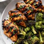 Once everything’s grilled to perfection, take your chicken off and let it rest for about 5 minutes. This step is key to juicy meat because it lets all those delicious juices redistribute. Then plate it alongside your golden-charred broccoli, garnish with a few snips of fresh chives, and you’re ready to dig in!