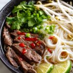 For special occasions, I’ve presented pho in individual mini hotpots at the table with portable burners—everyone loves the experience of watching their broth simmer and beef cook at their own pace. You can also serve pho in clear bowls to showcase the colorful layers, or use edible flower herbs (like Thai basil) to elevate the look.