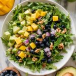 This refreshing Mango Cucumber Salad with Blueberry and Avocado combines sweet, tangy, and crunchy flavors, enhanced by a zesty cilantro lime vinaigrette. Perfect for a light lunch or a vibrant side dish, this salad boasts a colorful mix of fresh fruits, greens, and toasted walnuts.