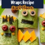 For Halloween parties, I’ve placed these monster wraps standing upright in a platter surrounded by “graveyard” decorations like edible dirt (crushed crackers) and gummy worms. It’s a massive hit! Or try slicing wraps into smaller pinwheels for bite-sized fun at kids’ lunchboxes or potlucks.