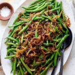 When the beans are tender-crisp and the onions are gloriously caramelized, transfer the beans to a serving platter and crown them with those sweet, golden onions. Serve hot and enjoy every bite of deliciousness!