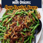 For dinner parties, I like to serve these roasted green beans topped with caramelized onions in a rustic ceramic serving dish, garnished with a sprig of thyme or rosemary. It instantly elevates the presentation and sparks conversations about the intense flavor combo.