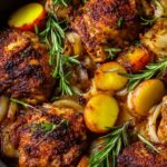 A flavorful and comforting Rosemary Apple Cider Chicken recipe featuring juicy bone-in chicken thighs baked with aromatic spices, fresh rosemary, sweet apples, and a tangy apple cider sauce. Perfect for a delicious family dinner with a beautiful balance of savory and sweet flavors.