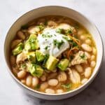 A comforting and flavorful Slow-Cooker White Chicken Chili made with tender chicken thighs, navy beans, green chiles, and a blend of spices. This hearty chili cooks low and slow for a perfect meal that’s easy to prepare and satisfying to eat. Topped with sour cream, cheese, fresh cilantro, and avocado, it’s ideal for cozy dinners.